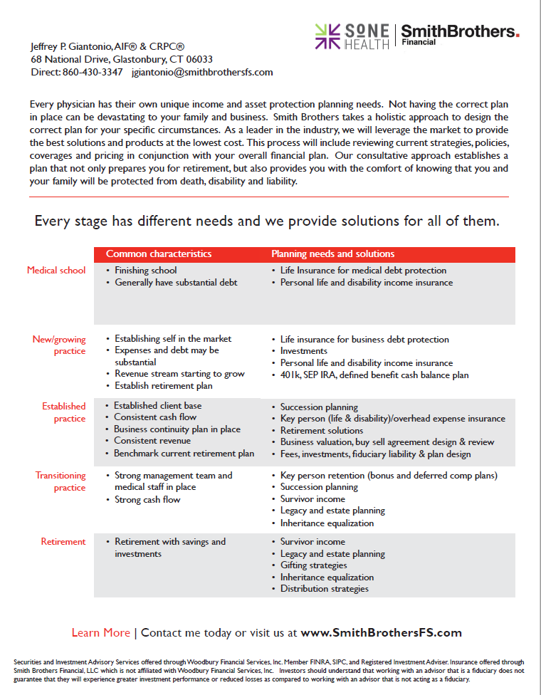 At Smith Brothers, you have a trusted partner who will provide perspective, education, guidance and clarity on how to proactively protect your financial assets. It is our legal and moral duty as Fiduciaries, to act in the best interests of our clients at all times, without exception. Our independence allows us to provide straight, unbiased advice that instills confidence and enables success. Financial Services we provide for both employers and employees: Retirement Planning, Investments, 401k Retirement Plans, Defined Benefit Plans, Life Insurance, Disability, Buy/Sell, Key Person, Business Overhead. Please contact us for a free consultation.